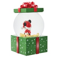 In festive colors of red and green, Mickey dressed as old St. Mick pops out of a Christmas gift. A snow flurry follows when the snow globe is shaken making this a perfect Christmas heirloom for years to come.