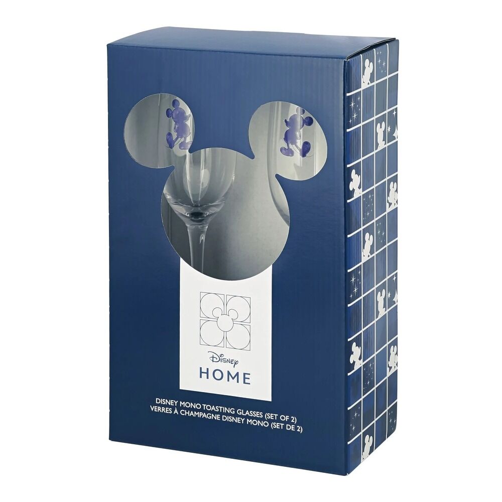 Introducing Disney silhouette Mickey Mouse Toasting Glasses! This set of two toasting glasses will elevate any celebration. With a touch of Disney magic, these Toasting glasses feature the iconic and beloved silhouette of Mickey Mouse. These are packaged in exclusive Disney Home packaging, making them a great gift.
