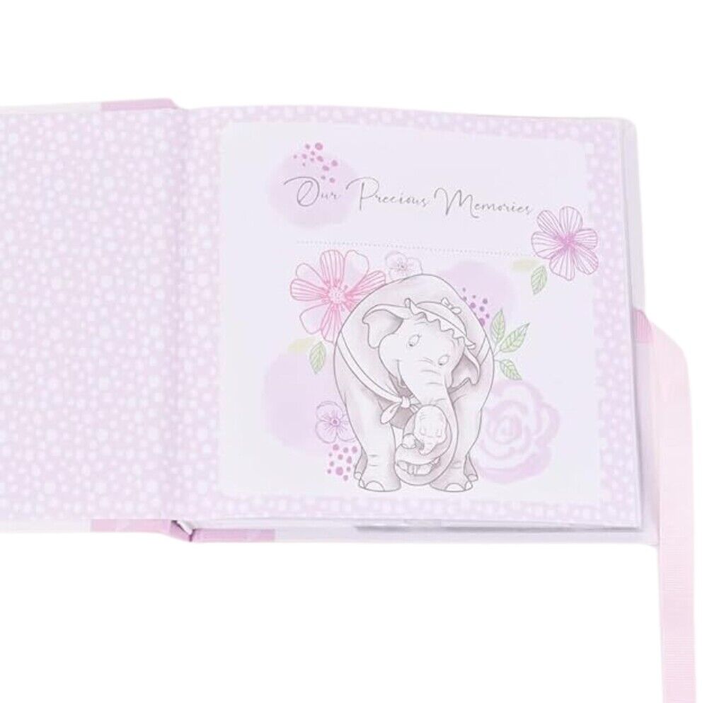 photo album. Featuring a lovely floral print with an illustration of Dumbo and his mother, look back on precious moments shared