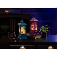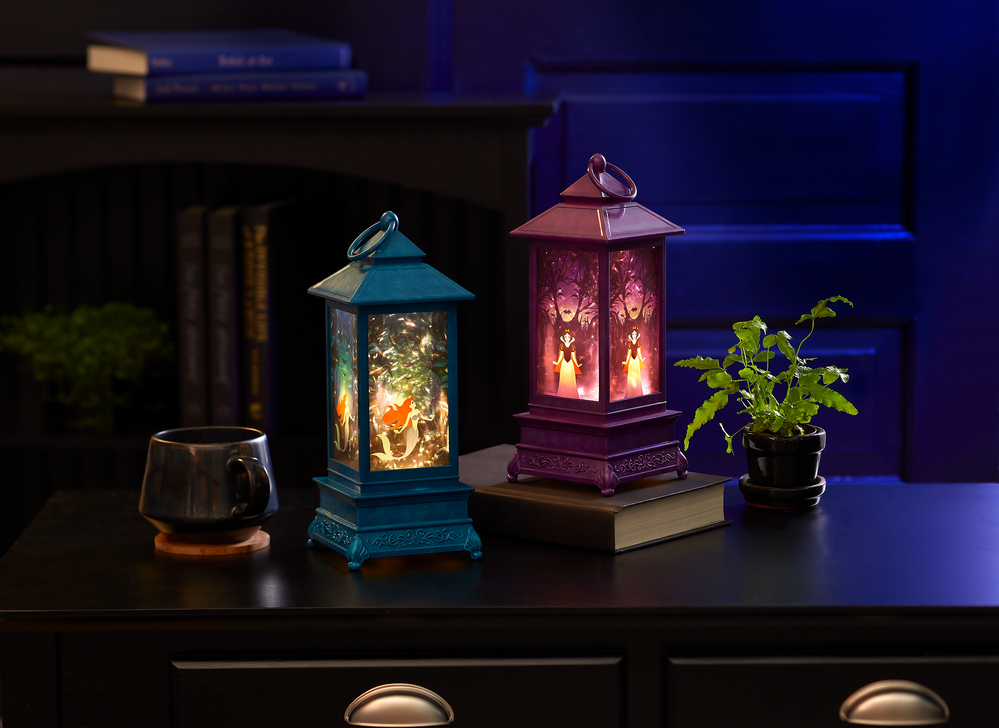 The illuminated Little Mermaid water lantern features beautiful artwork with Ariel and Ursula on all four sides. When turned on, an automatic water blower propels the sparkling glitter like magic, creating a dynamic scene suitable for the silver screen.