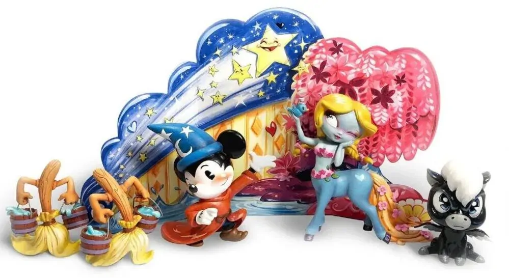 Sorcerer Mickey, Pegagus, the Brooms, and the Centaurette make for one magical “Fantasia” set. This limited-edition set comes with Backdrop display.