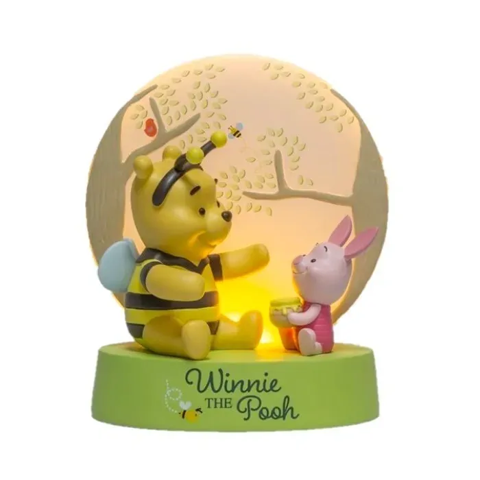 Featuring the adorable One Hundred Acre Wood pair, this sweet scene is backlit so that the trees behind Pooh and Piglet softly glow. Pooh is all dressed up in a cute bee costume, complete with antennae and wings, to match the pot of his favourite snack held by his little piglet friend. It is perfect for any Winnie the Pooh or Disney fan, or in a nursery or bedroom setting. A truly special piece showcasing the close relationship between Piglet and Pooh Bear. Figurine lights up and comes in a branded gift box.