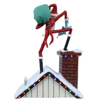 Santa Jack drops a little gift for Timmy down the chimney which is sure to delight with fright! Special details include a real fabric gift bag, glittery snow on the roof top and illuminated Christmas house lights!