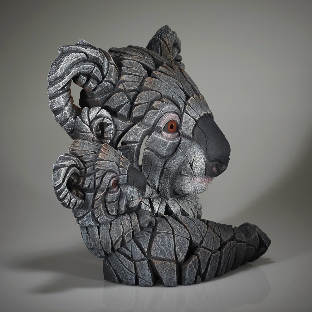 Coming from a land down under, presenting this adorable pair, the Edge Bust Koala and Joey. A superb sculpture of the marsupials by Matt Buckley from the EDGE contemporary sculpture collection. This piece has been traditionally designed in clay by sculptor Matt Buckley, then hand-cast from a special blend of marble stone and hand-painted.