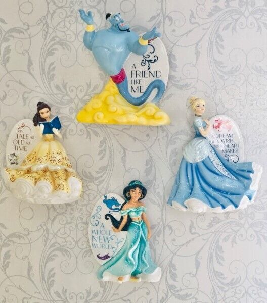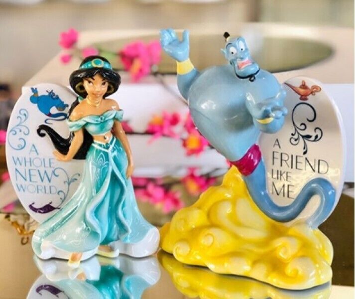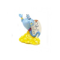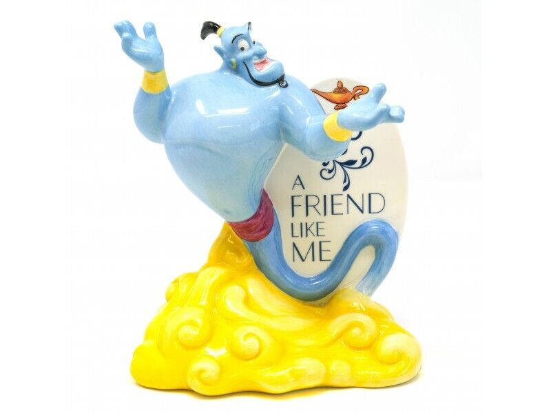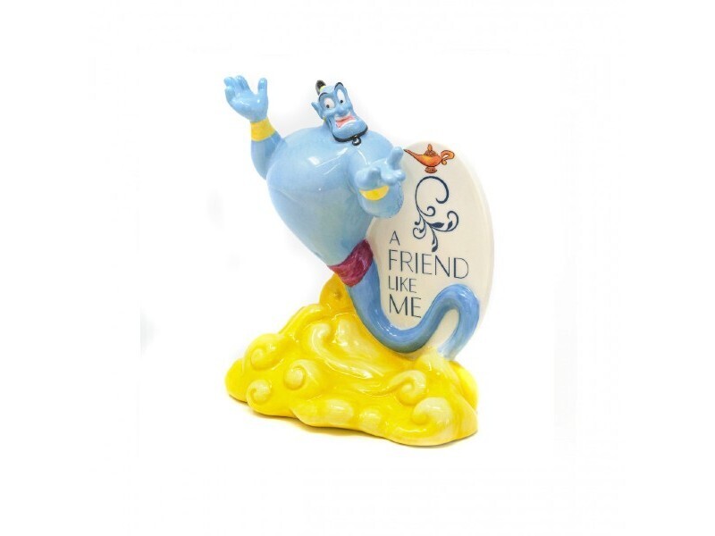 This delightful new series of flatback figurines are the perfect way to increase your collection. Flatbacked to hang on your wall or to take less room on the shelf – so you can fit more on! Genie on a yellow cloud of smoke with 'A Friend like me' featured on the plaque. Hand made and hand-decorated in fine bone china.