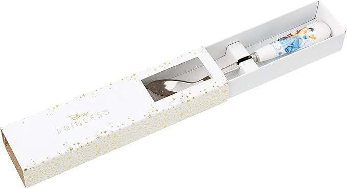 Add a touch of fairy tale magic to your tea with the Cinderella Wedding Spoon. The handle is crafted from real fine bone china and adorned with special motifs of the regal couple, this spoon is a beautiful addition to Cinderellas enchanting love story. Presented in a gift box, its the perfect accessory for Disney tea enthusiasts.