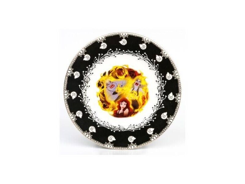 Ursula’s matching teaware features her signature shell necklace and purple tentacles. This stunning plate shows her transformation from the Sea Witch Ursula to the beautiful human Vanessa. The Villains tea plates tell a story of their own!