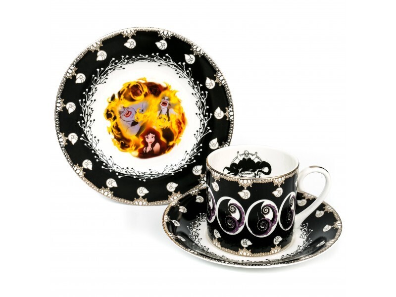 The matching Ursula teacup and saucer is the second in our series of Villains. Stunning black with real platinum detailing; this is the sophisticated way to show your dark side! Matching teaset available.