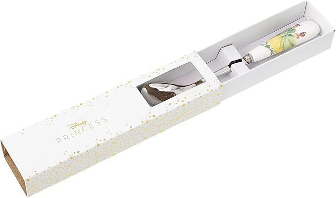 Stir in the flavors of romance with the Tiana Wedding Spoon. With a ceramic handle crafted from real fine bone china and detailed with enchanting motifs of the royal pair, this spoon is a delightful homage to Tiana and Prince Naveens enduring love. Presented in a gift box, it adds a touch of culinary charm to your teatime rituals.
