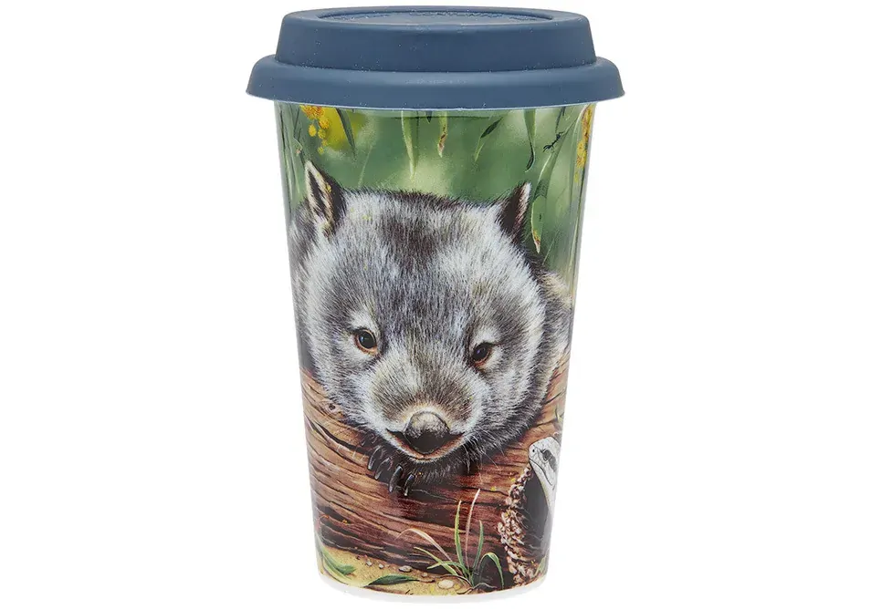 FAUNA OF AUSTRALIA - WOMBAT AND LIZARD DOUBLE WALLED TRAVEL MUG
