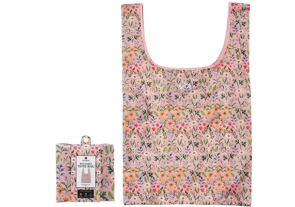 FLOWERING FIELDS REUSABLE TOTE BAG - PINK