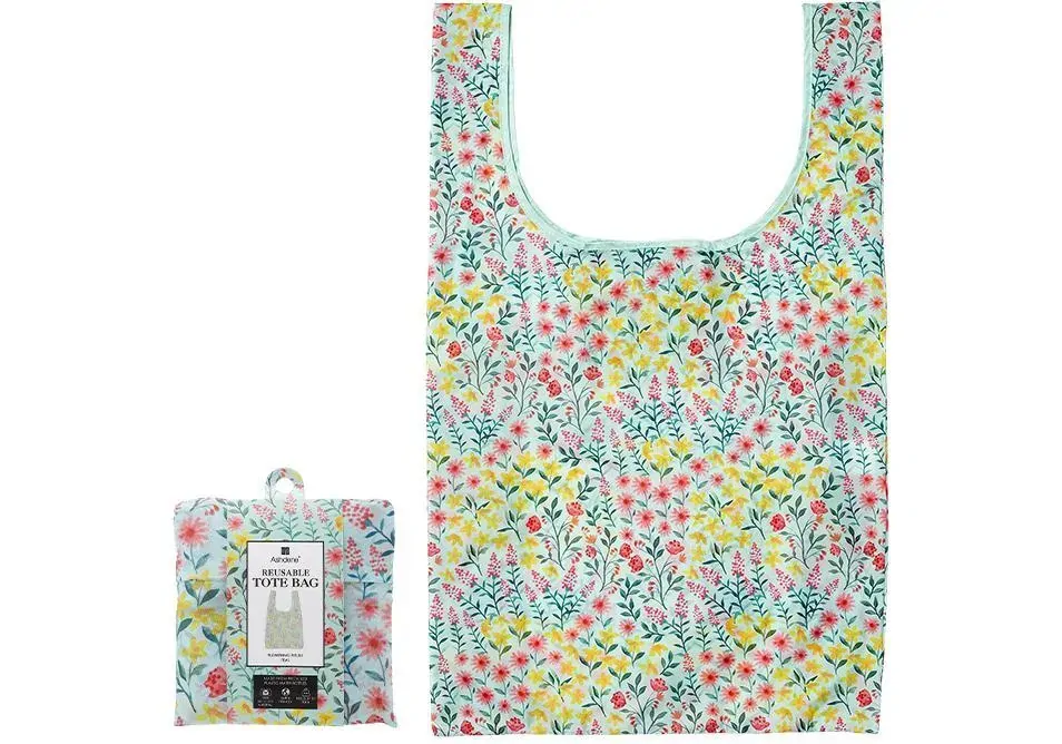 FLOWERING FIELDS REUSABLE TOTE BAG - TEAL