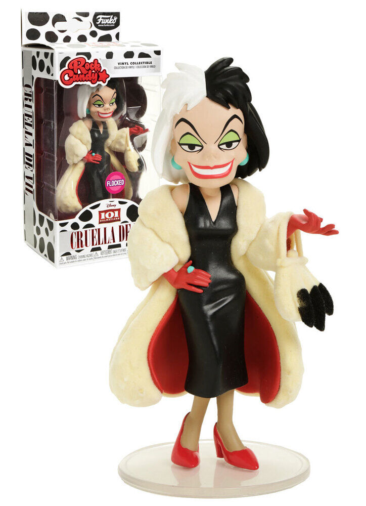 A RockCandy figurine of Cruella De Vil, the antagonist of Disney's 101 Dalmatians.