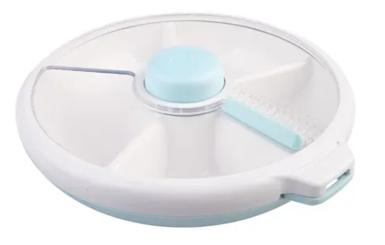 Put a new spin on snacks with the GoBe Large Snack Spinner. Featuring a safe, fun, and engaging push button spinner, empower your child’s appetite and learning with this unique design snack container. Utilising a durable food safe construction, this easy to use snack container features a spinnable tray with 4 individual compartments, including a larger double size compartment, suitable for sandwiches and other foods, a no slip silicone ring base, and spill and leak-resistant sliding door lid. Strengthen your child’s development and autonomy by allowing them to actively choose what to eat, helping to nurture healthy relationships with food.