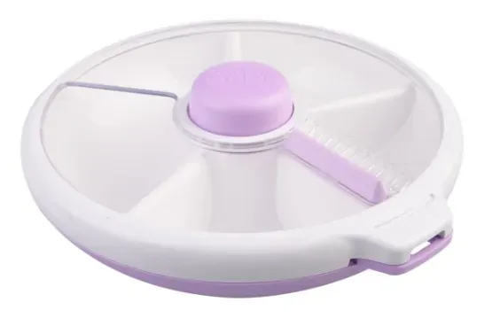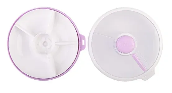 Put a new spin on snacks with the GoBe Large Snack Spinner. Featuring a safe, fun, and engaging push button spinner, empower your child’s appetite and learning with this unique design snack container. Utilising a durable food safe construction, this easy to use snack container features a spinnable tray with 4 individual compartments, including a larger double size compartment, suitable for sandwiches and other foods, a no slip silicone ring base, and spill and leak-resistant sliding door lid. Strengthen your child’s development and autonomy by allowing them to actively choose what to eat, helping to nurture healthy relationships with food.