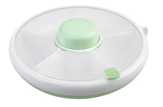 Put a new spin on snacks with the GoBe Original Snack Spinner. Featuring a safe, fun, and engaging push button spinner, empower your child’s appetite and learning with this unique design snack container. Utilising a durable food safe construction, this easy to use snack container features a spinnable tray with 5 individual compartments, and spill and leak-resistant flip door lid. Strengthen your child’s development and autonomy by allowing them to actively choose what to eat, helping to nurture healthy relationships with food.