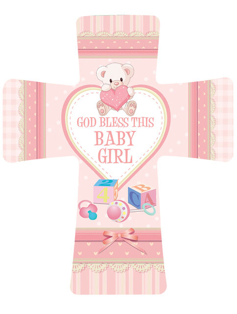 God Bless this Baby Girl Porcelain Cross