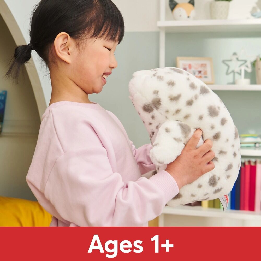 Snuffles is joined by new soft, snuggly animal friends… each with big smiles and huggable moon shapes of their own! Sitting upright at 25.4cm, Nuri is a beautiful, super-soft leopard seal with a classic white-and-grey spotted design and realistic details. This timeless seal also features a unique curved design that lets her look in your eyes with every hug, making each squeeze even more special.