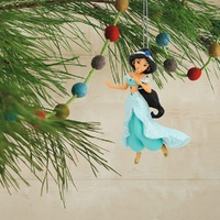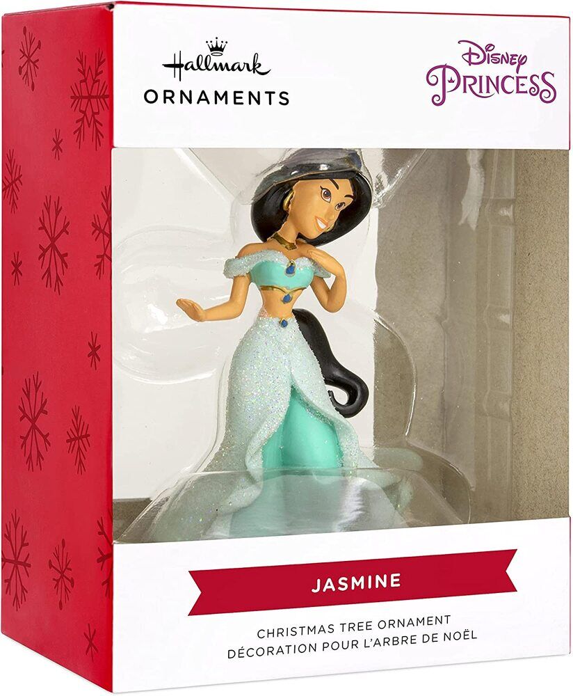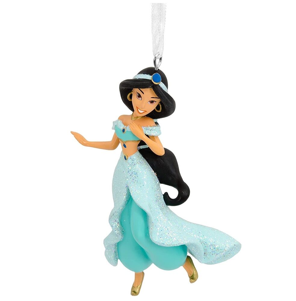Enter a new world of holiday adventure with this glittery ornament that features Jasmine from the Disney animated movie "Aladdin." Wearing her classic turquoise ensemble, she's a beautiful addition to your Christmas tree. Hallmark Ornaments celebrate characters and personalities from contemporary and classic movies, TV shows, toys, entertainment and sports.