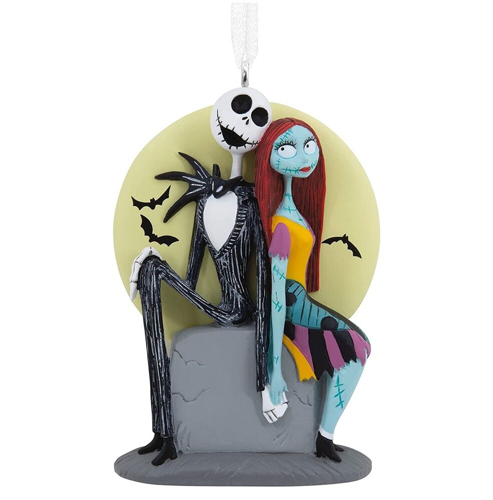 Scare up some holiday fun with this Christmas tree ornament featuring Jack Skellington and Sally from "The Nightmare Before Christmas" sitting on a tombstone. The Pumpkin King and his stitched-up sweetheart are sure to bring the spirit of the season to your decorating for years to come. Hallmark Ornaments celebrate characters and personalities from contemporary and classic movies, TV shows, toys, entertainment and sports.