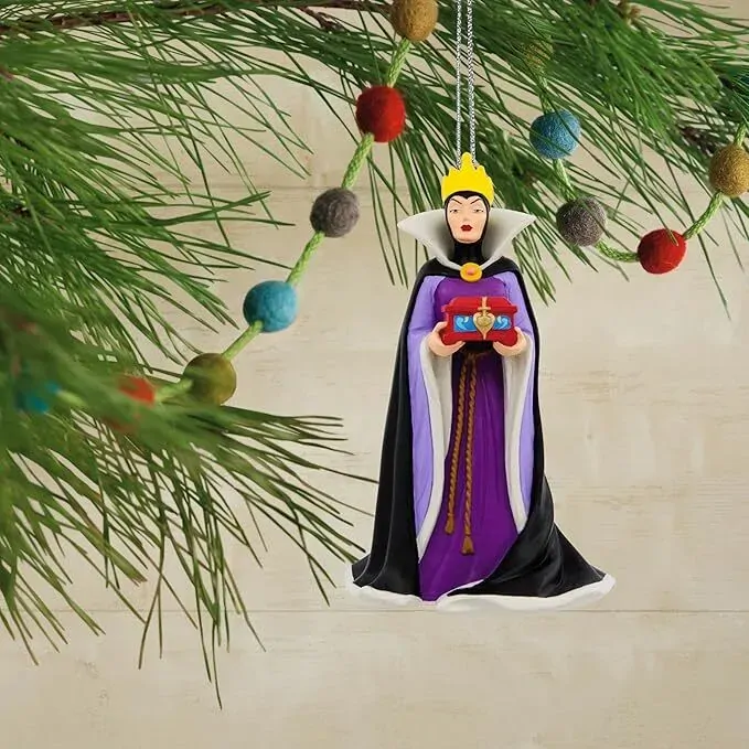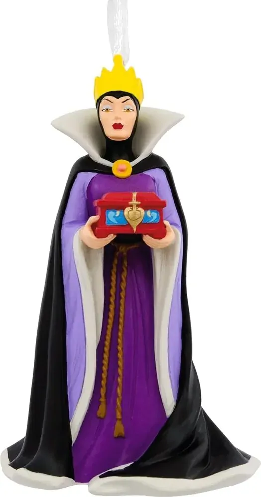 Declare the Evil Queen the fairest of them all when you display this Christmas tree ornament featuring the unforgettable villain from Snow White and the Seven Dwarfs! Made of resin, this ornament is ready to hang on your Christmas tree, complete with a ribbon attachment.