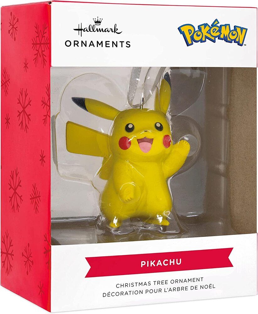 Electrify the holidays with this Pikachu Christmas tree ornament. A fan-favorite character, this red-cheeked Electric Pokémon is ready to spark some cheer in your home. Fans of the popular anime series will love this bright yellow decoration.The ornament is ready to hang on your Christmas tree with a hanger attachment. Great Christmas gift idea for fans of Pokémon and Pikachu. Hallmark Ornaments celebrate characters and personalities from contemporary and classic movies, TV shows, toys, entertainment and sports.