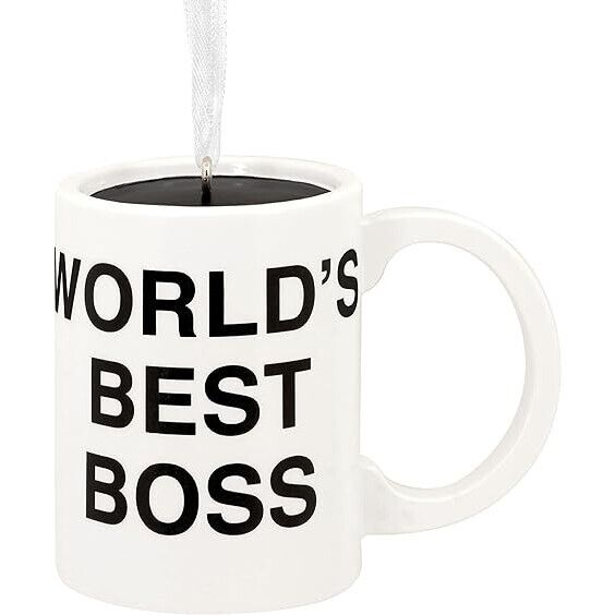 From the Dunder Mifflin Scranton Regional Branch to your tree, this Christmas ornament of Michael Scott's iconic "World's Best Boss" coffee mug is perfect for showing your love of "The Office."