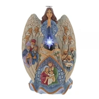 This Nativity Angel Masterpiece tells the story of the First Christmas with the artistry and attention to detail that is unmistakably Jim Shore. The Bethlehem star lights, and this heirloom holiday centrepiece plays 'Away In A Manger' at a touch.