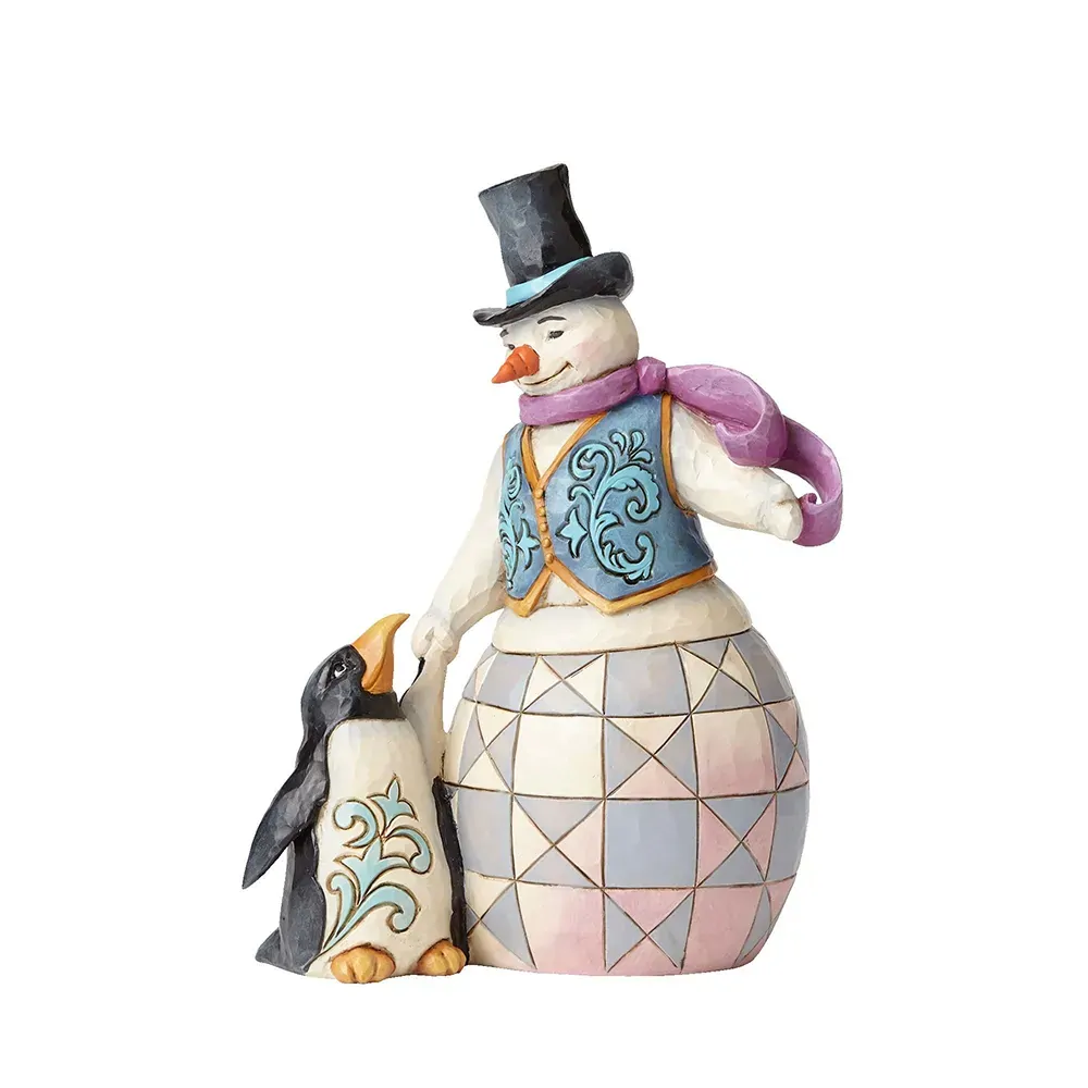 Jim Shores delightful new Snowman and Friends series features a whimsical collection of wintry chums. This first in the series Snowman with his Penguin pal is artfully decorated in an icy color palette and Jims signature folk art style.