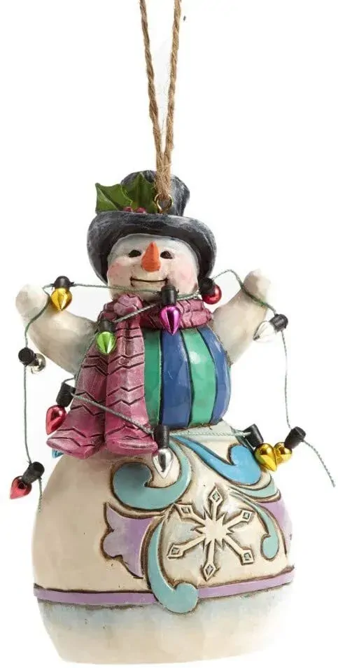 JIM SHORE HEARTWOOD CREEK - SNOWMAN WRAPPED UP IN LIGHTS HANGING ORNAMENT