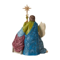 Jim Shore's elegant Victorian Collection captures the warm decorative style of a by-gone age with rich color and a subtle sparkling finish. This exquisite Holy Family design is a heartfelt depiction of the timeless story at the heart of Christmas.