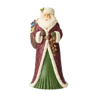 Great Value! Jim Shore's elegant Victorian Collection captures the warm decorative style of a by-gone age with rich color and a subtle sparkling finish. This Santa Statue, an incredible value, is beautifully decorated with Jim?s signature rosemaling.