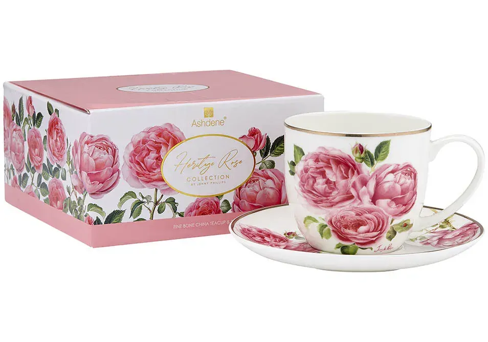 Make your afternoon tea special with our Heritage Rose Collection, featuring hand-painted roses by renowned Australian artist Jenny Phillips. This stunning design of blooming roses accented with gold detailing is the perfect traditional teaware range. Bring the beauty of the garden into your home, turning an ordinary cup of tea into a special occasion. These items are packaged exquisitely with accents of gold foil, adding to the grandeur of this range and making it perfect for gift giving.
