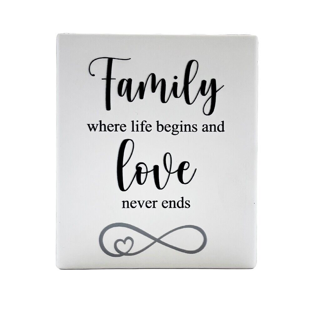 - Plaque Reads: "Family is where life begins and love never ends."