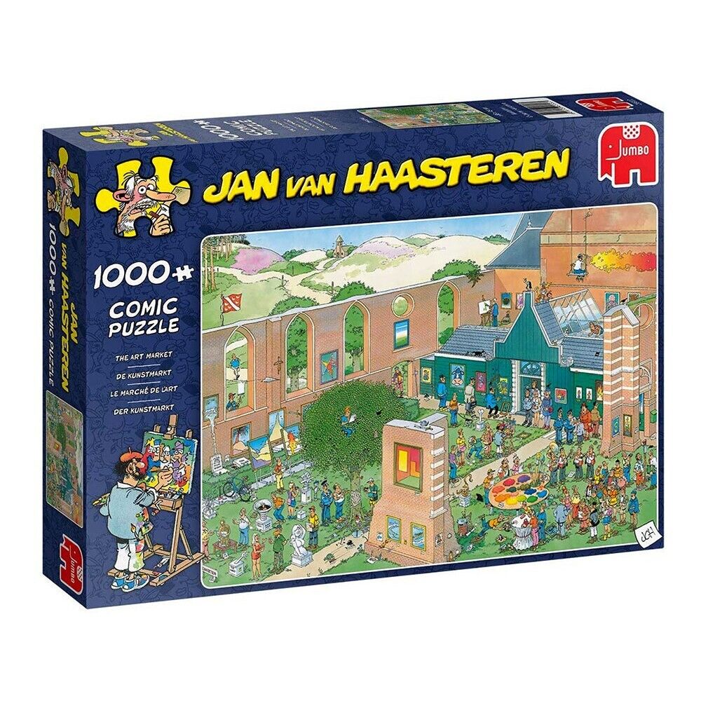 The finished puzzle image captures a huge local art market where local artists can display their pieces of art for others to see. But of course, with every Jan van Haasteren puzzle, it doesnt otherwise go to plan with characters and situations that many of us would all find all too familiar.
