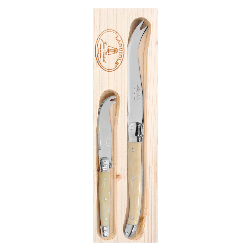 JEAN DUBOST LAGUIOLE DELUXE - 2 PIECE CHEESE KNIFE SET LIGHT HORN