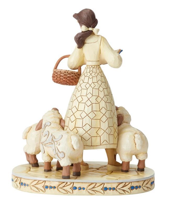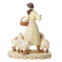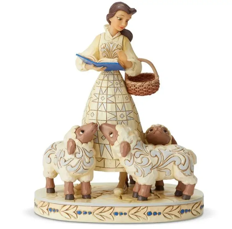 Daydream away with this imaginative, brave beauty designed by Jim Shore! In this lovely White Woodland piece, Belle tells tales of romance and far-off adventure to her sheep friends, not knowing she will soon find love on her own enchanting journey.