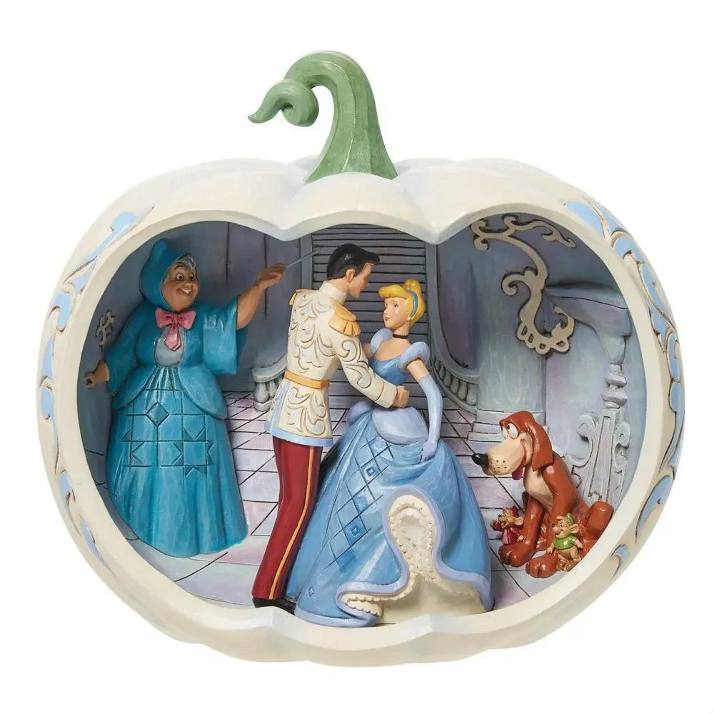 Cinderella gets the night of her life falling in love at the ball, but when the clock strikes midnight, her Fairy Godmother's magic runs out. Framed within an enchanted pumpkin, this Jim Shore masterpiece captures Cinderella's favorite moment.