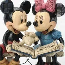 Jim Shore’s unmistakable style combines classic Disney characters with designs inspired by folk art forms of quilting, rosemaling and tole painting.  2013 marks the 85th anniversary of Mickey and Minnie Mouse. In honor of the momentous milestone, Jim Shore created this sentimental scene where America's sweethearts take a trip down memory lane, reminiscing about their early days of laughter and love.