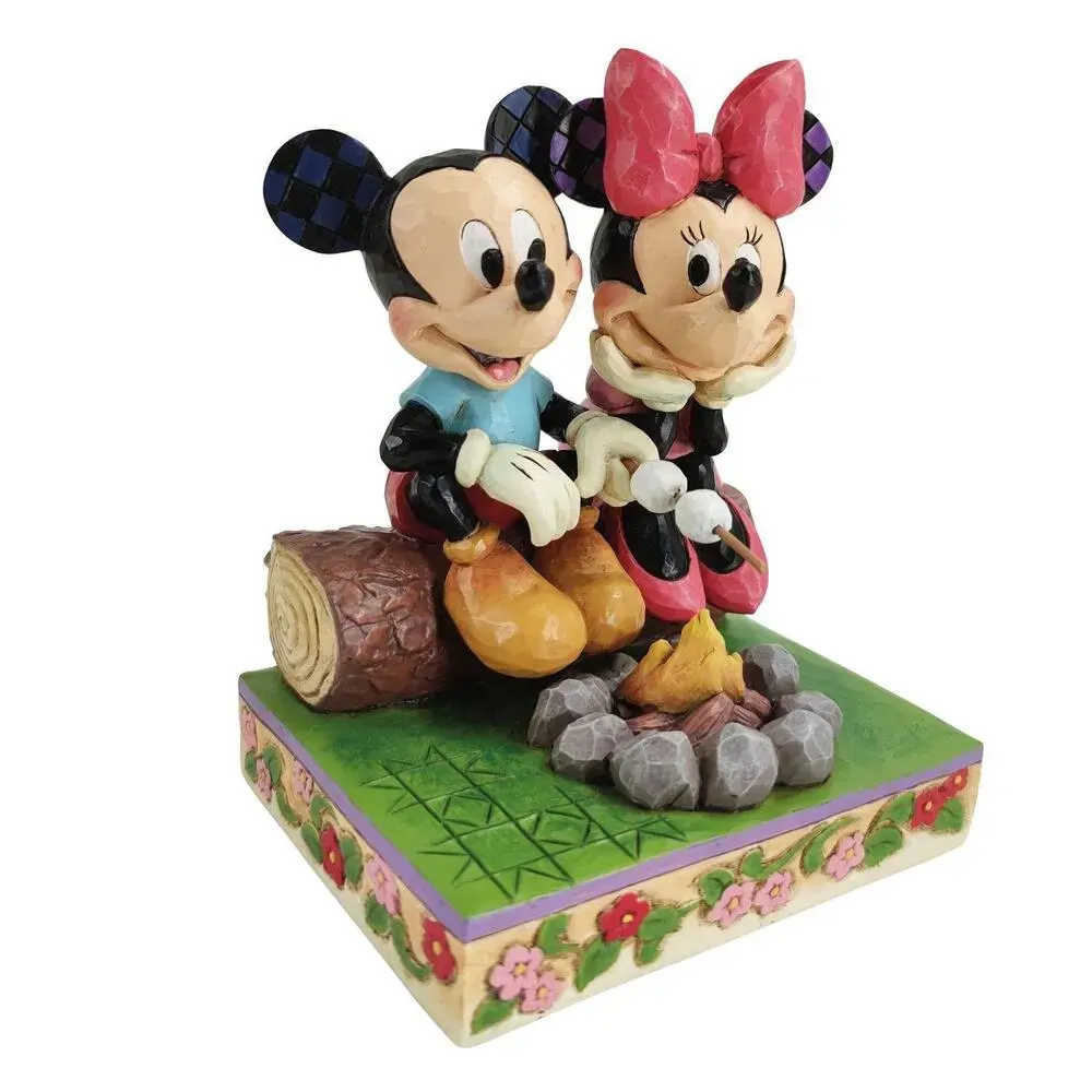 Looking lovingly at her love, Minnie Mouse holds her face with infatuation next to a charming campfire. Roasting marshmallows together, the couple enjoy the warmth of the fire and each other's company in this striking Jim Shore nature scene.