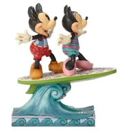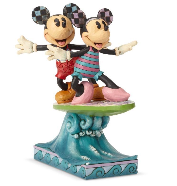 Vacation means it's time to have fun in the sun! Designed by Jim Shore, Mickey and Minnie team up to catch waves together in an impressive balancing act. Enjoy a splash of endless summer with this beach-inspired piece in your collection. Surf's up!