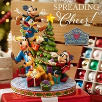 Mickey Mouse gets a hand and a boost decorating the tree this year. His friends form a teetering tower to hoist him to the top of the Mouse family tree while Minnie adds the finishing touches below in this Disney by Jim Shore design.