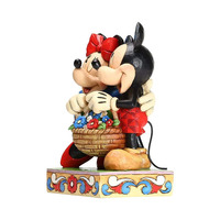 The Disney Traditions collection by Jim Shore combines the magic of Disney with the time-honoured motifs of handcrafted folk art. This piece depicts Mickey and Minnie in an embrace with a basket of colourful flowers.