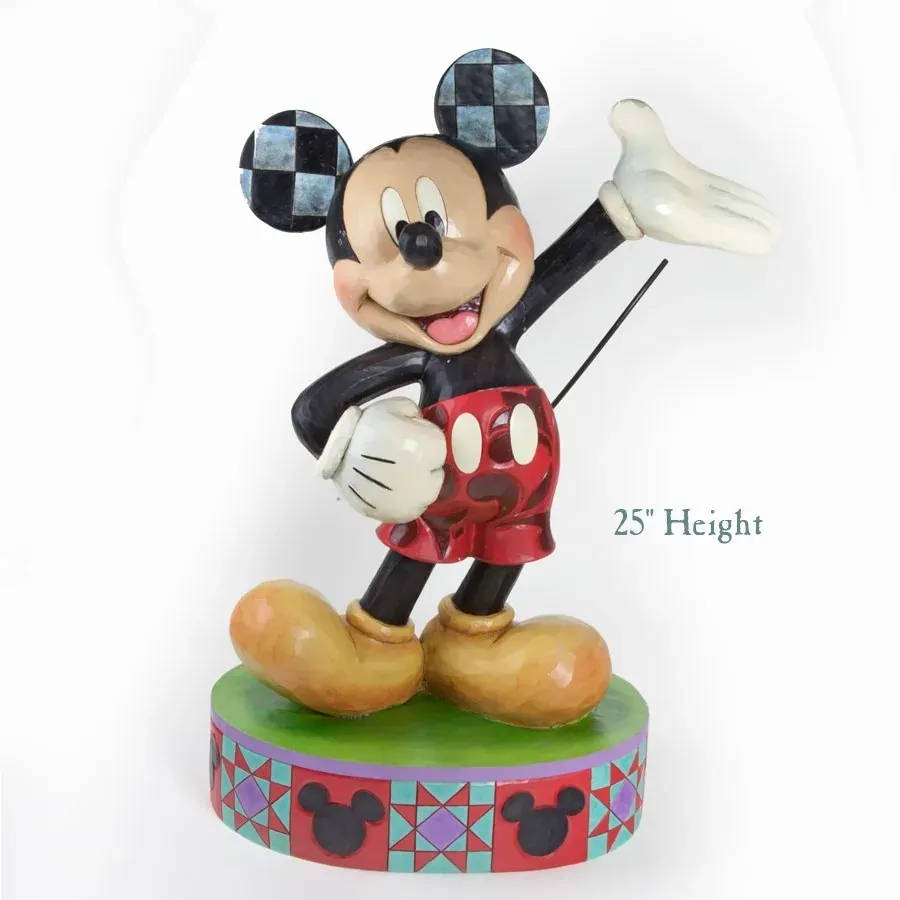Designed by award wining artist and sculptor Jim Shore for the Disney Traditions brand. This 25" tall Mickey Mouse is sure to catch the eye of every passer by. The statue is made from resin. It is suitable for outdoor use.