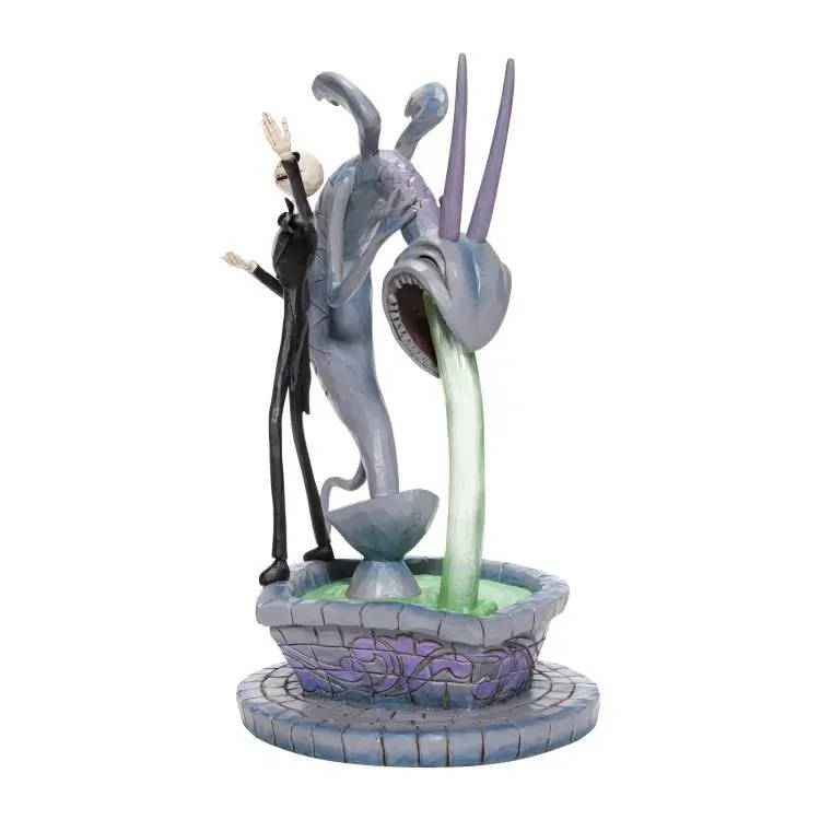 Standing at the edge of the Halloween Town fountain, Jack Skellington welcomes you home. With ghouls, ghosts, and skeleton-led show tunes, it's a fantastic place to live. Have a little Halloween in your everyday with this Jim Shore design.