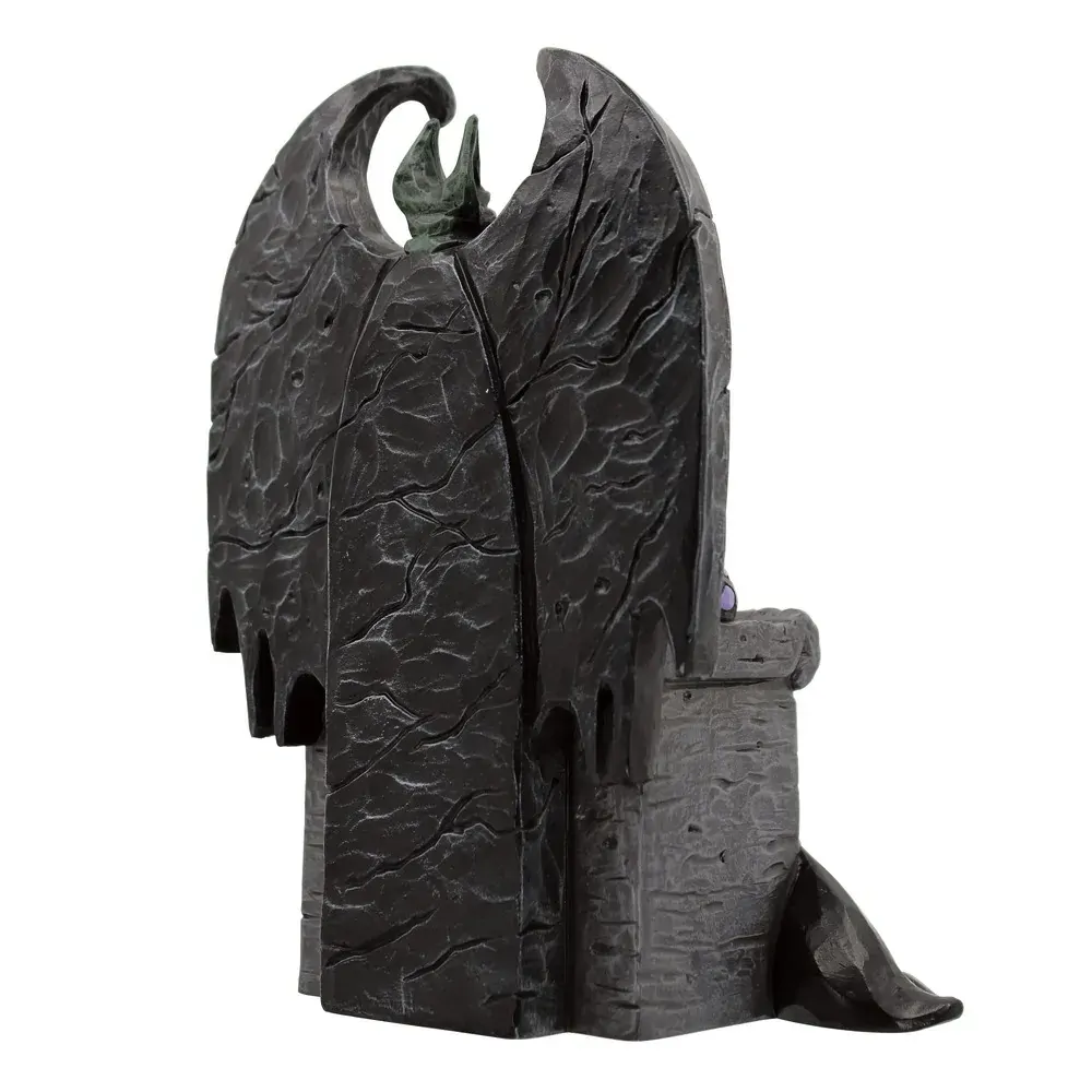 In celebration of Sleeping Beauty's 65th anniversary, beloved artist Jim Shore presents an inspired sculpt of the villainous Maleficent. With purple rosemale patterning, Maleficent wears her iconic black robe as she commands a crow.