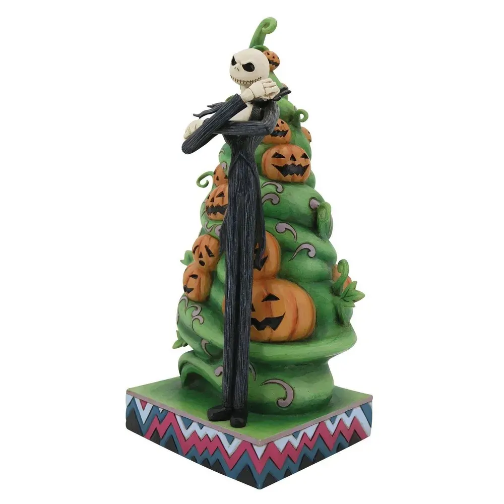 Marrying the beloved Tim Burton film with his own style, Jim Shore creates a piece to cherish. Tree decorated in jack-o-lanterns, Jack Skellington is interchangeable with Santa Jack.