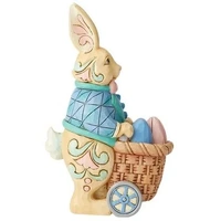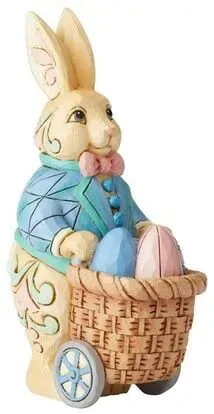 With a wheeled basket, this rabbit rolls around town giving away painted eggs. Donning a strapping blazer and bow tie, this bunny brings cheer everywhere he goes. With authentic Jim Shore designs, there's a little something for every-bunny.