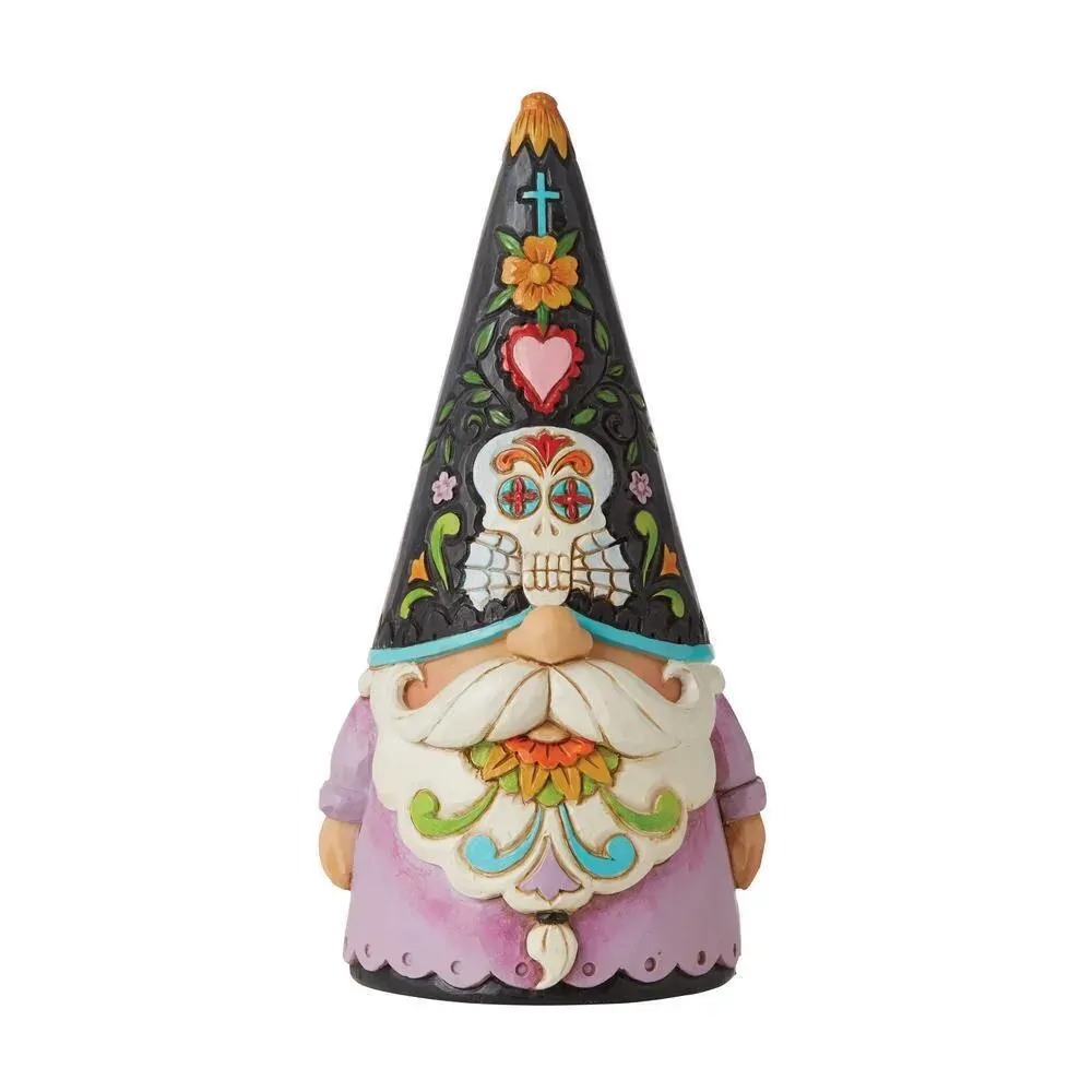 Known for his gnomes, Jim Shore creates another garden keepsake to cherish, this one modeled for Dia de los Muertos. Celebrating the Mexican holiday with bright color and skull imagery, this gnome shows off his dead-ication with festive cap and beard.