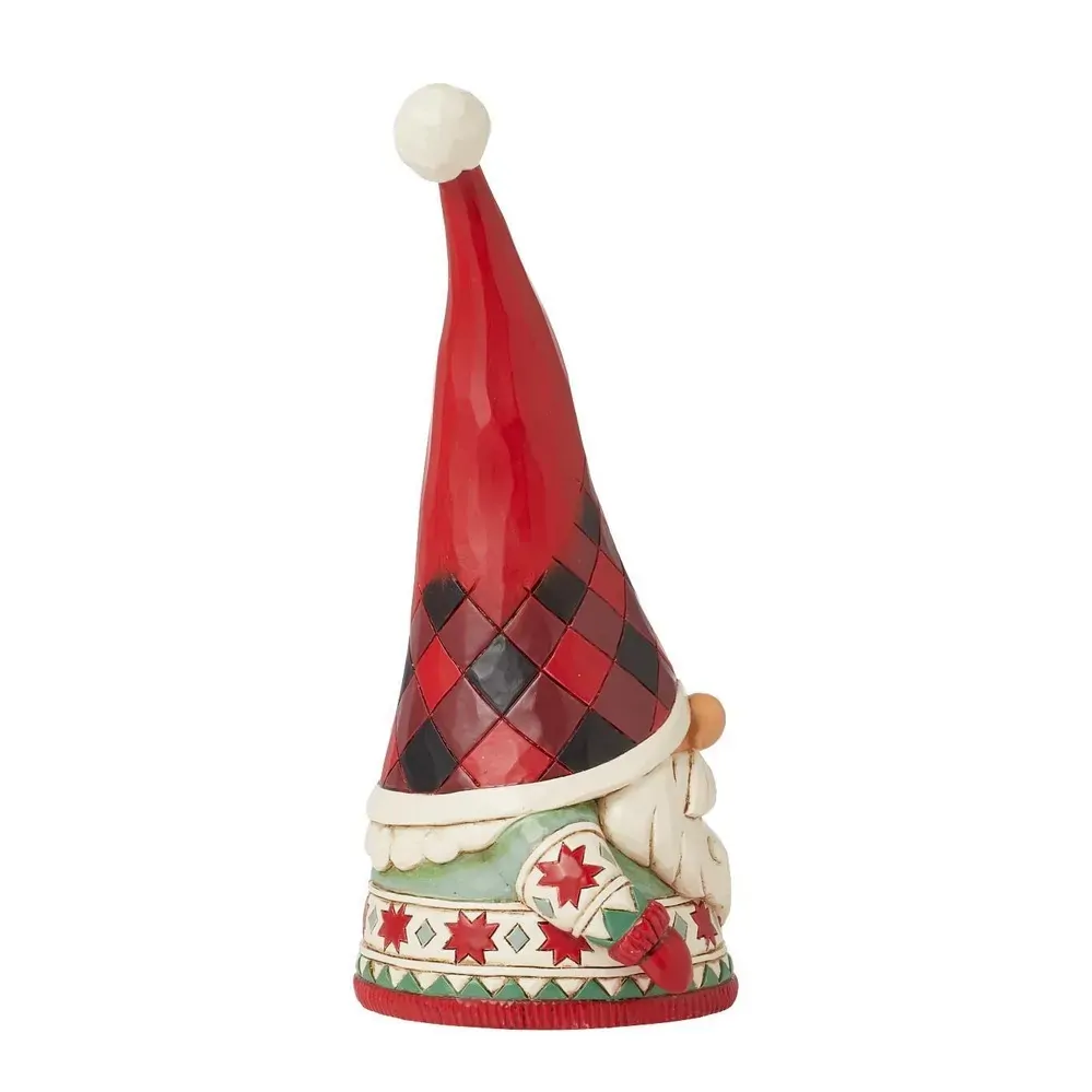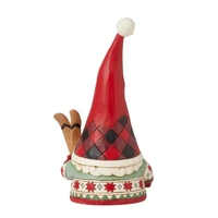This festive gnome from Jim Shore's Highland Glen collection is ready to hit the slopes this winter. With a towering buffalo plaid Santa hat, white beard and red & green holiday sweater, this sporty gnome smiles with skis in his mittens.